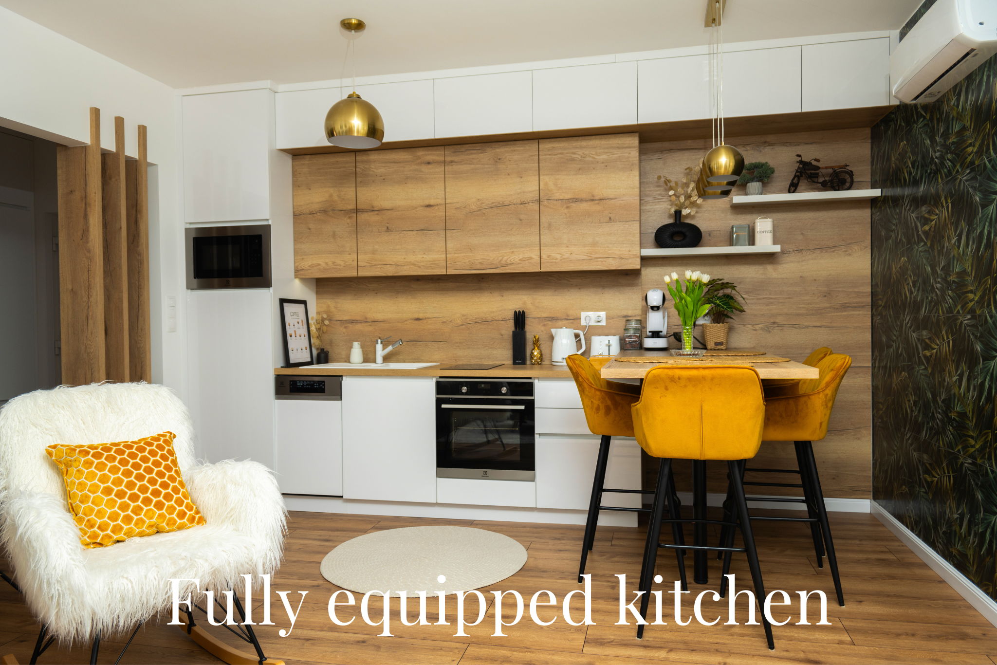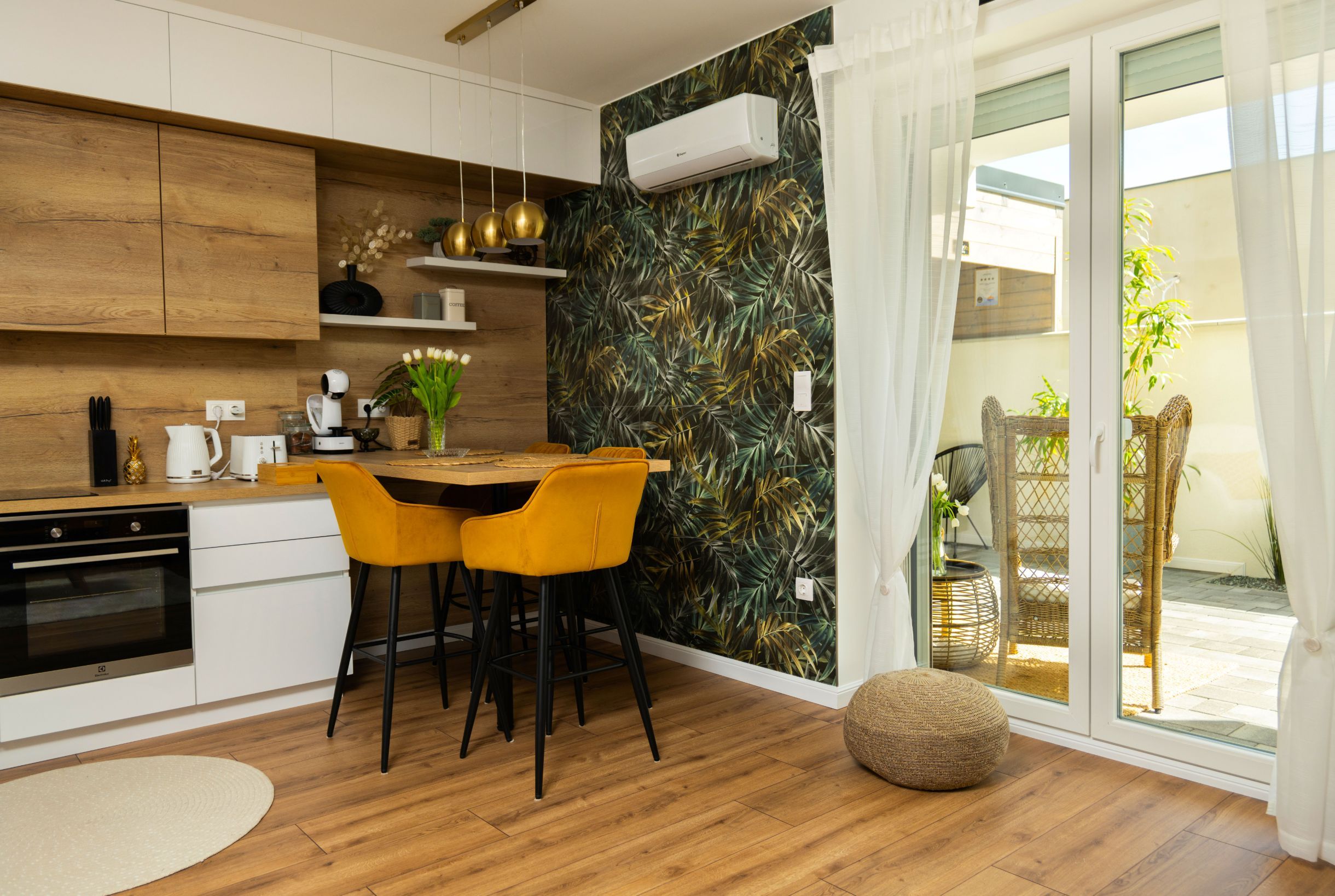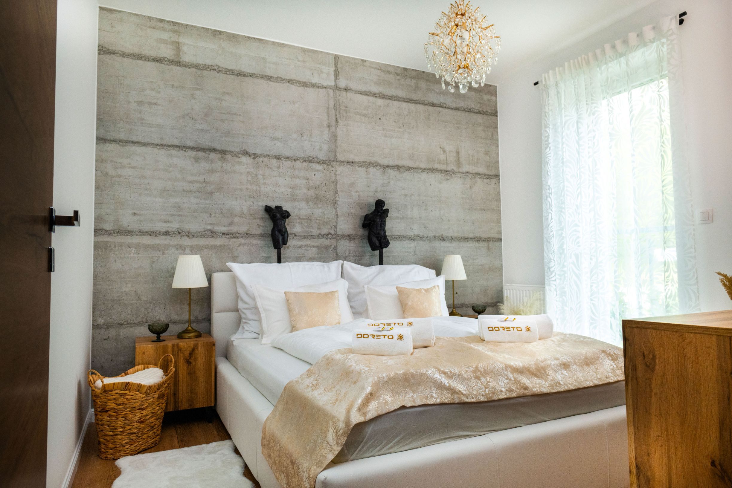 Pezsgő, kávé bekészítéssel, privát udvarral várják az feltöltődésre vágyókat. A luxus felszereltség része a king-size ágy, a smart TV, a nagy sebességű Wi-Fi és a teljesen felszerelt designer konyha.