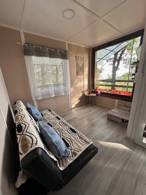 • Tágas és világos belső tér: A vendégház két különálló hálószobával rendelkezik, mindkettő kényelmes, egyszemélyes ágyakkal felszerelt, amelyek igény szerint franciaágyként is használhatók.